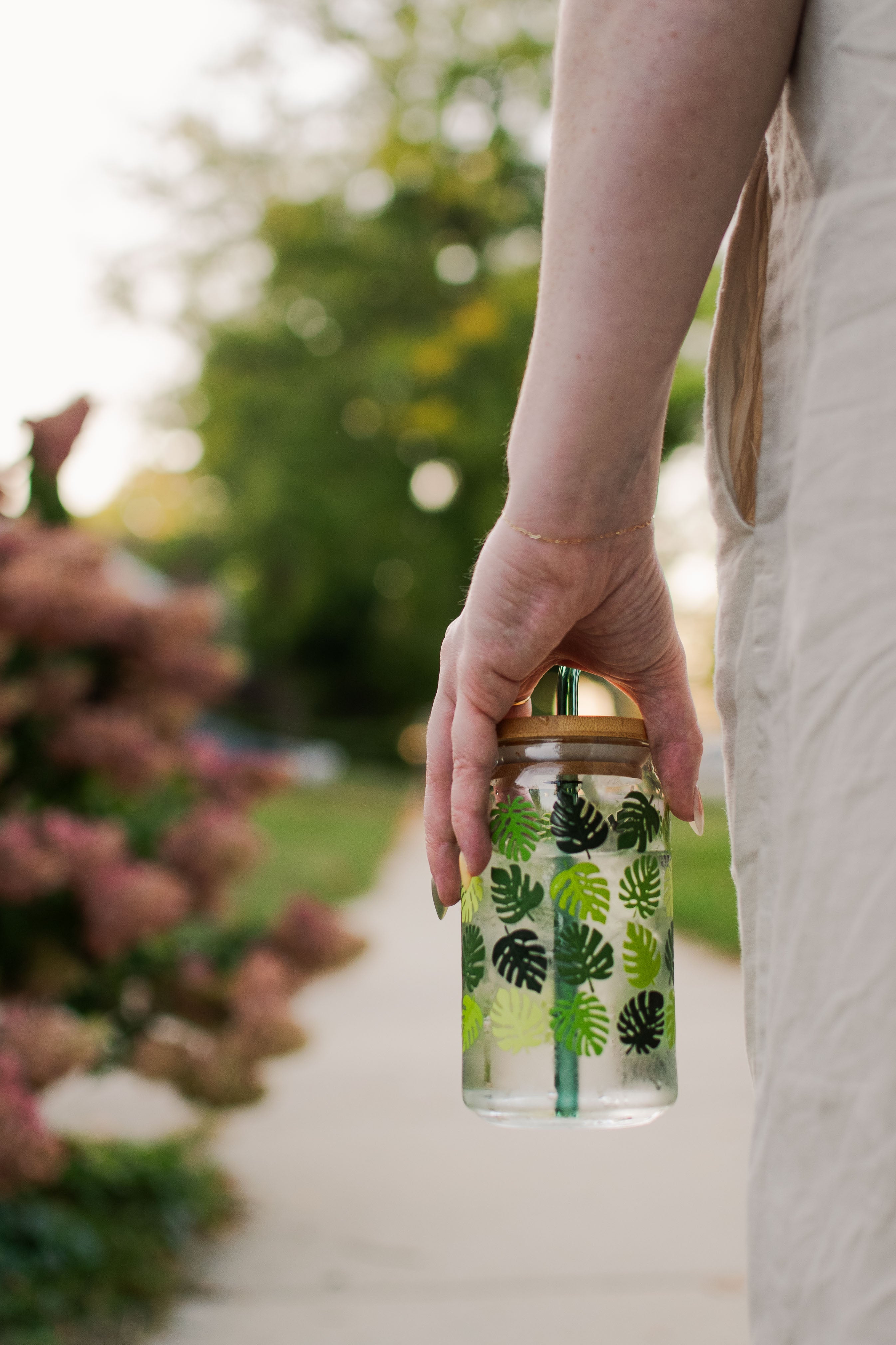 Tropical Leaves Glass 16 oz